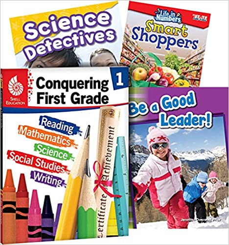 Conquering First Grade, 4-Book Set – Fun Practice Workbook and 3 Reading Books for Kids Ages 5-7 to Prepare for 1st Grade